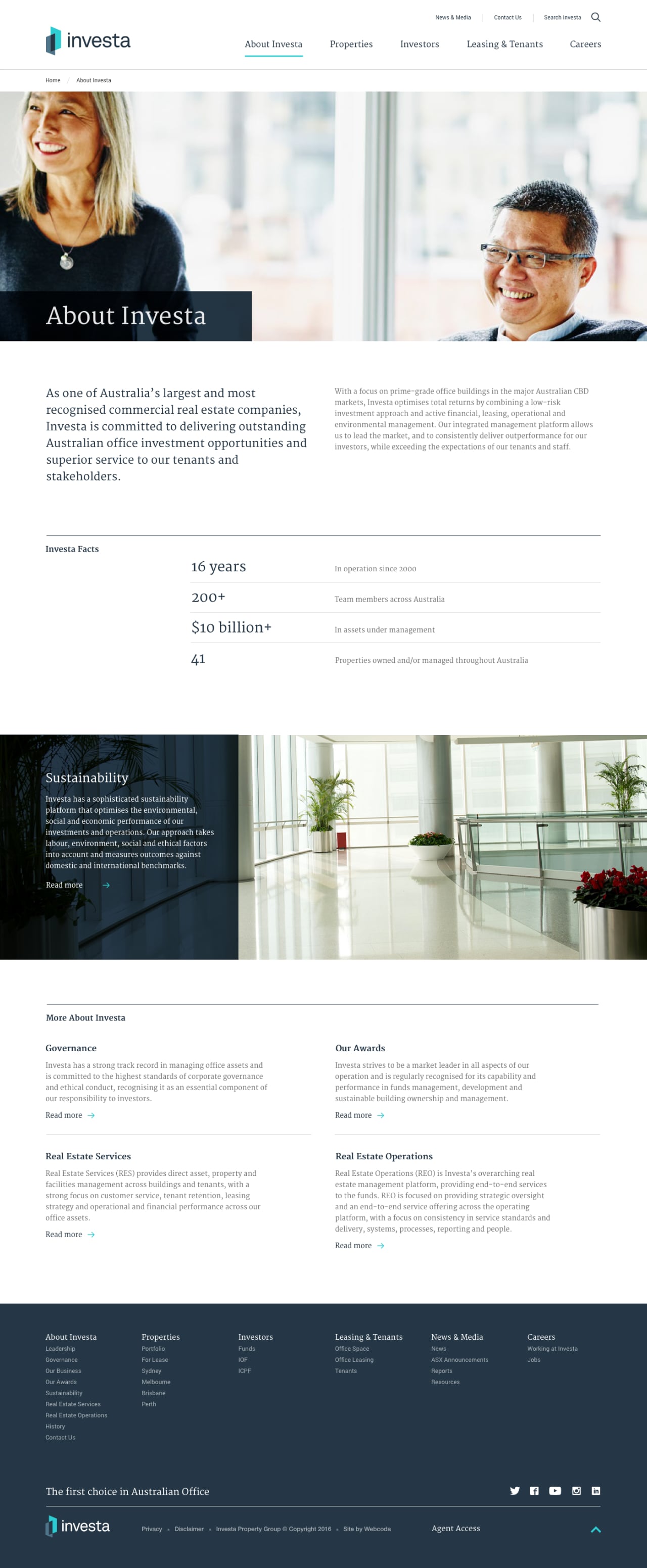 Investa is a powerhouse in commercial real estate investment. They pride themselves on being cutting edge, environmentally sound and consumer focused. Investa is one of the leading owners and managers of institutional-grade real estate. With 300 employees, over 40 properties and a portfolio worth over $10billion, Investa needed to capture this extensive network and ability to provide tailored service.