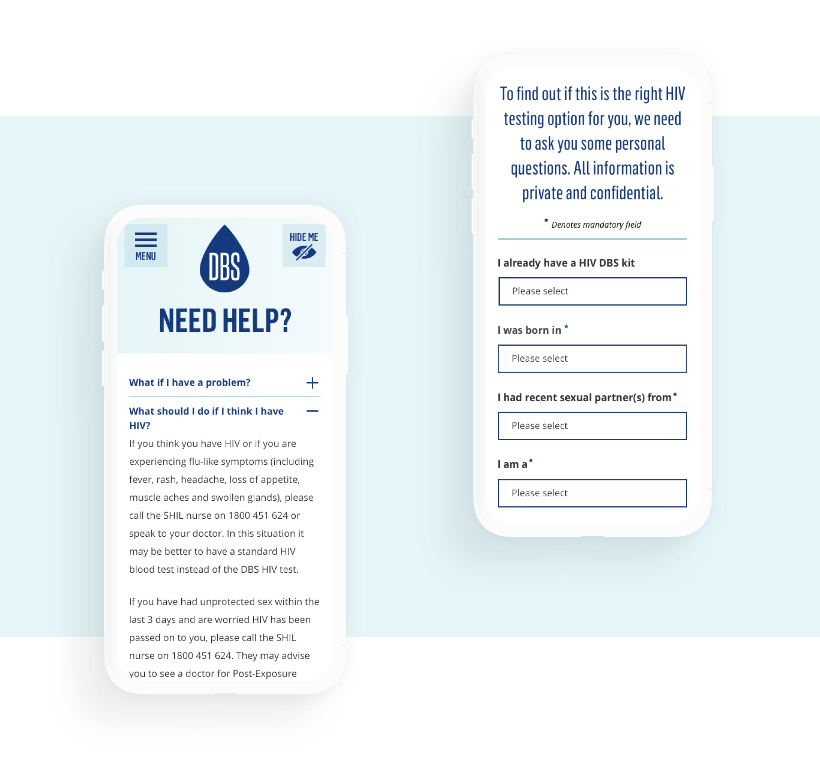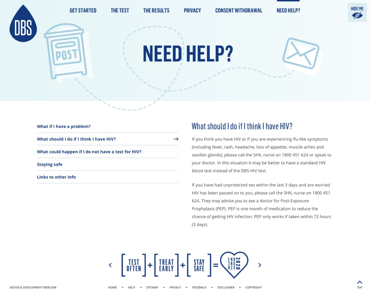 The DBS website also contains useful info and FAQs on what is often a very private, sensitive topic. There is even a button to quickly hide the page in case someone happens to walk past at the wrong time.