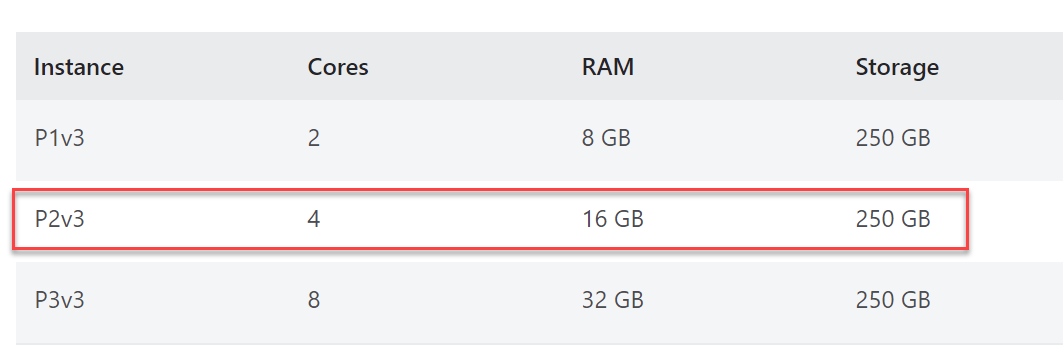 Our standard server configuration is the Azure plan P2V3 but on a dedicated environment this can be tailored.